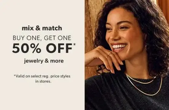 Get it fast! Shop in store and enjoy buy one, get one 50% off jewelry and more.