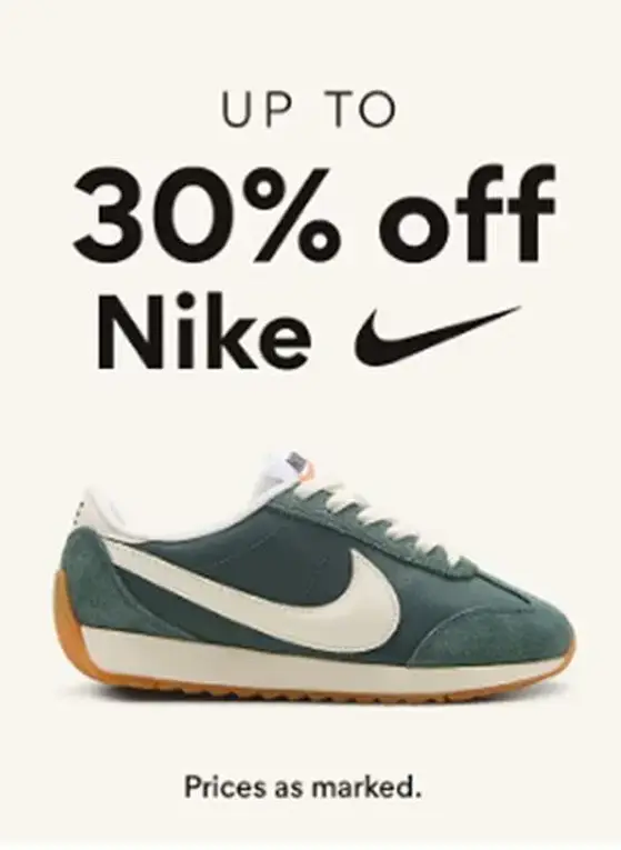 Hurry in and get up to 30% off Nike in store for a limited time.