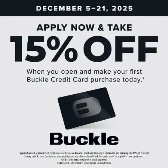 Caption: Get more and spend less from December 5-21 when you open and make your first Buckle Credit Card purchase.