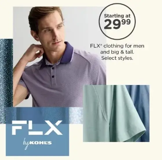 Stop by and enjoy FLX clothing for men and big & tall starting at $29.99 in store.