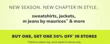 40% off select reg. price styles valid in any maurices store until March 7, 2026. No coupon needed in stores.