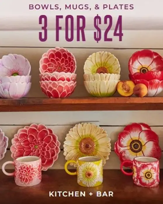 Stop by and get bowls, mugs, & plates 3 for $24 in store.